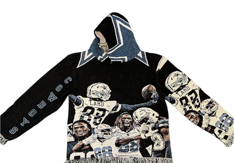 Introducing Tapswithonya Gallery, a showcase of custom tapestry clothing that blends artistry, culture, and modern fashion. This collection features handmade garments adorned with intricate designs, including portraits of famous figures like Rod Wave, Drake, Nicki Minaj, and even sports teams like the Dallas Cowboys. You’ll also find special custom pieces with icons like Martin Luther King Jr. and high school football team logos.